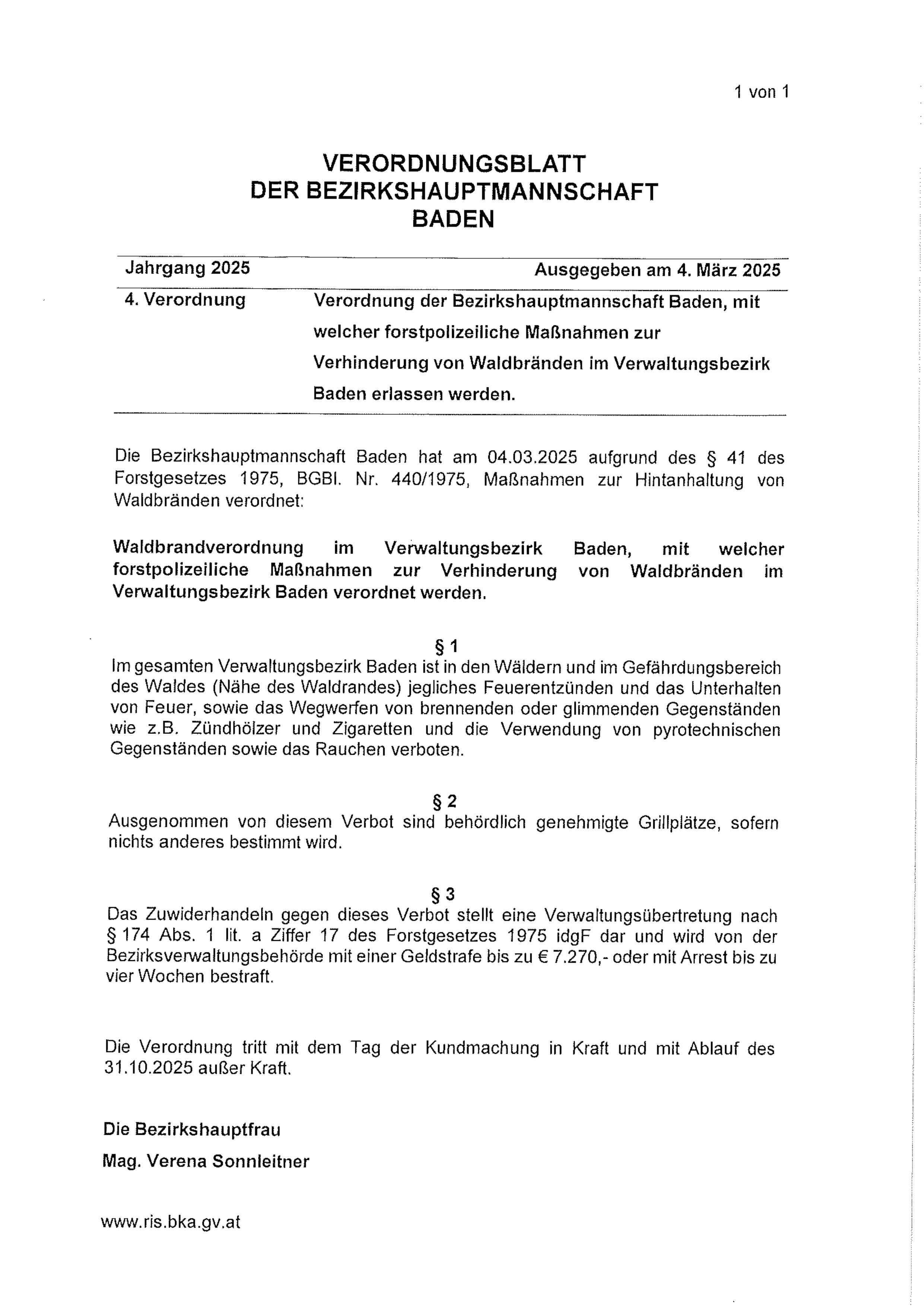 Waldbrandverordnung BH Baden